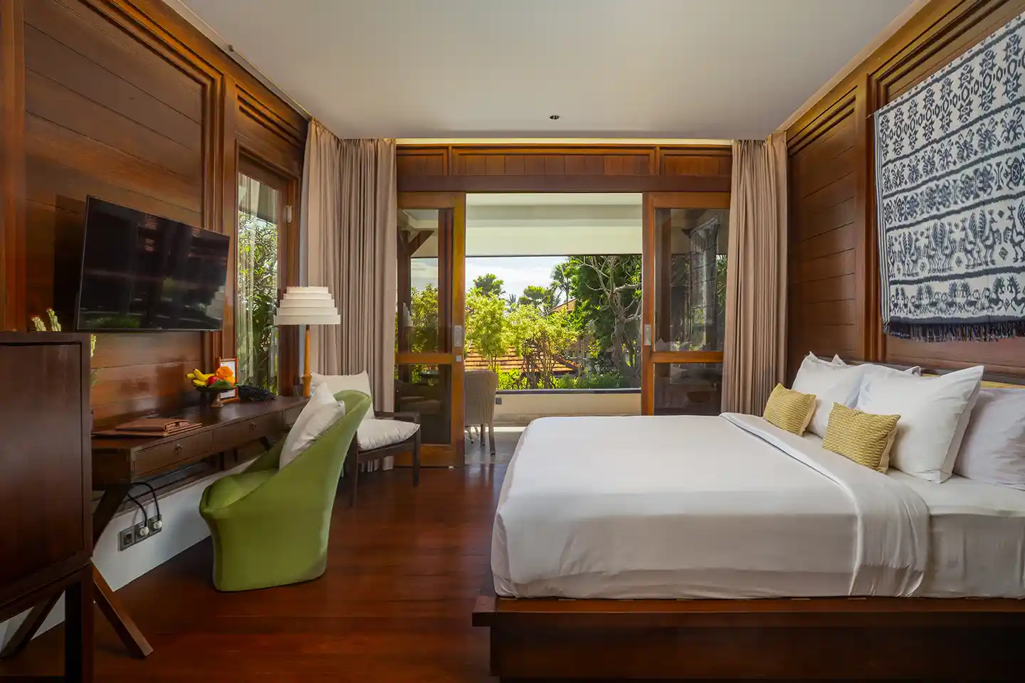 The 68 square-meter villa offers lush tropical garden view, an elegant Balinese-inspired home where you could enjoy the peaceful and serenity of the Resort from your room, with a comfortable bedroom, a private terrace and spacious bathroom with bathtub, a perfect place to unwind and relax.