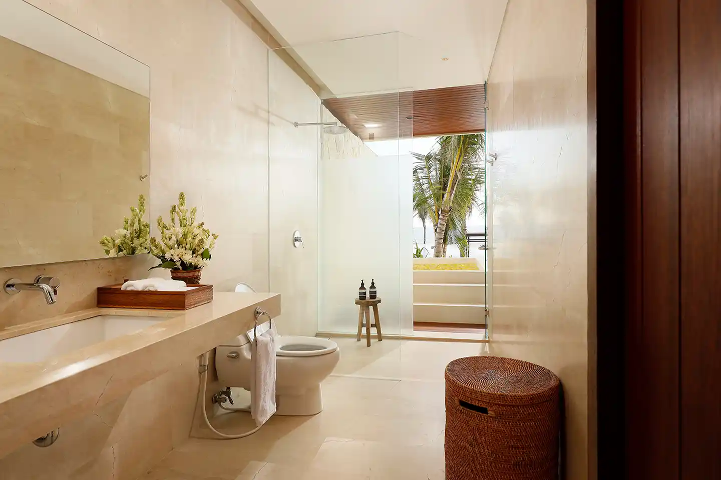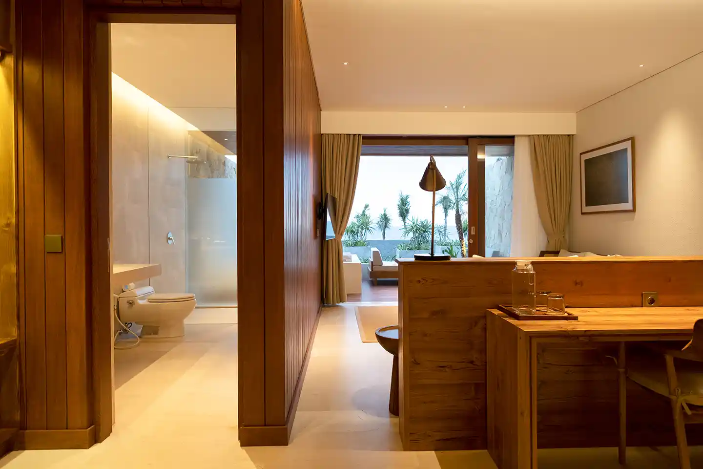 Three stylish Jacuzzi Suite Ocean View are set overlooking the tranquil sanctuary of Pasut Beach, this 86sqm square-meter suite offers a classy and minimal design with carefully curated selections of furniture, featuring a king size bed, spacious bathroom with a semi-outdoor jacuzzi creates a complete relaxation.